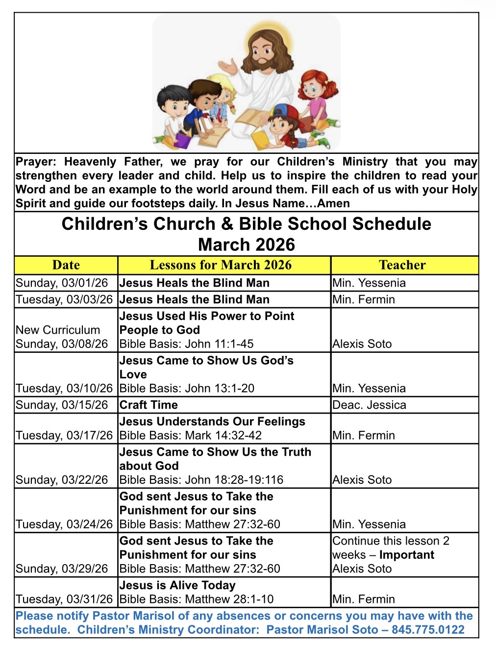 Our Children’s Ministry has a wonderful group of devoted teachers in a rotation schedule. Each teacher has a unique way of connecting with our children. That’s what makes Children’s Church and Bible School a learning adventure. Come see what’s happening at New Beginnings Church.
